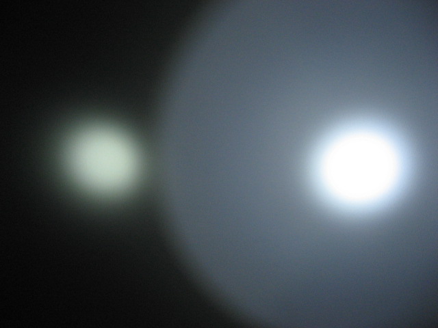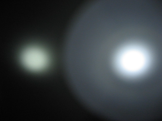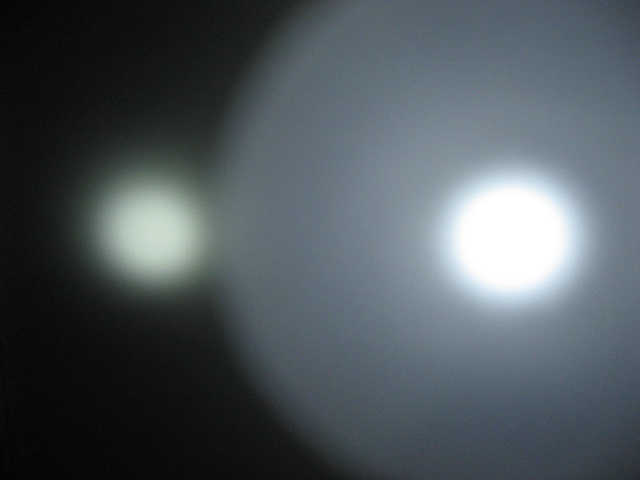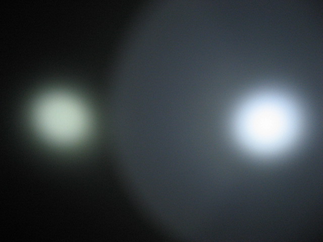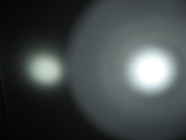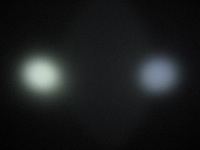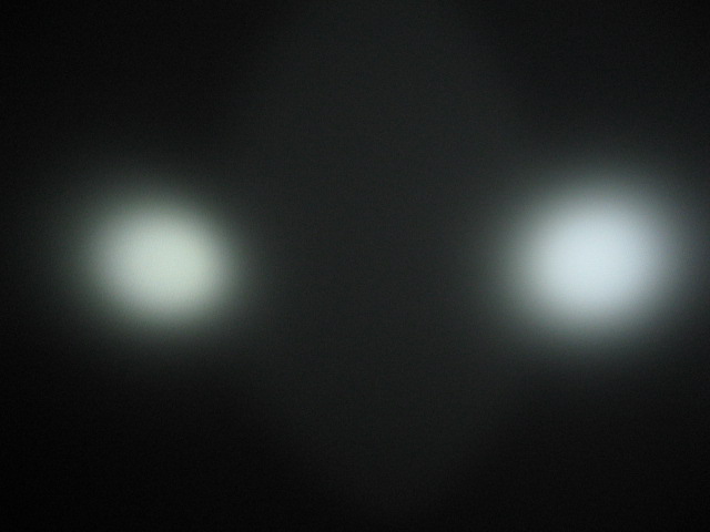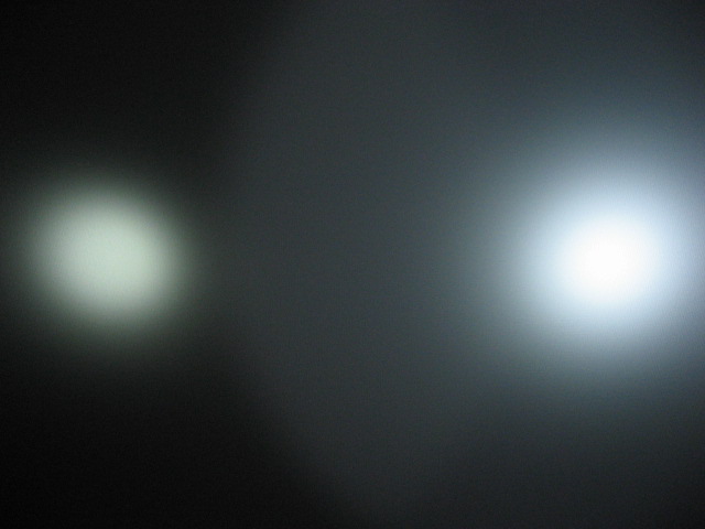 L1P の中心照度で絞りを調整したととしても、4V近くで駆動したときの Cree XR-E の中心は完全にサチってるようにみえますので、この写真から各ライトのいわゆるトーチルーメン的な光量を判断することはできないんですけど、パッと見た印象くらいは伝わるといいな、と思いつつ...