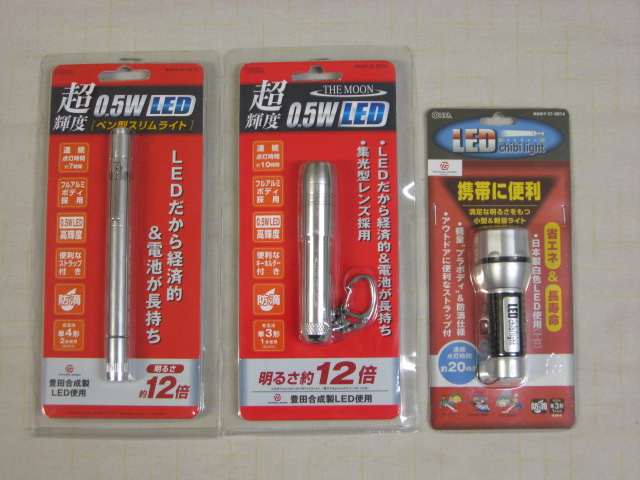 特に今回買えなかったんですがプラボディで 0.5W 一発を 4D でドライブするライト(これは¥2000くらいだったかな?)や、0.5W 一発を 2D でドライブするライト(確か¥880くらい)なんか、値段も含めて、災害対策コーナにどさっとおいてあったりしたので、数売れそうですね。