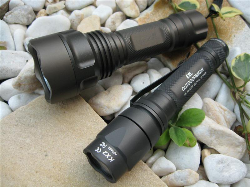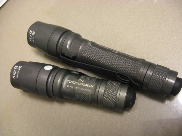 今回も KX1, KX2 ともに動作電圧などは SUREFIRE として非公開らしいので、KX1 ヘッドはよくわかりませんが、KX2 ヘッドは少なくとも 6V は大丈夫だろう、ということで、KX2 ヘッド + E1 ボディ + RCR123 で点灯させてみましたが、こちらも特に問題ないようです。