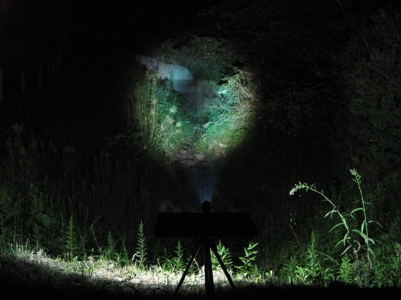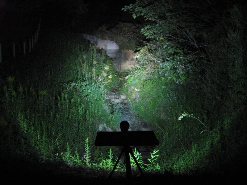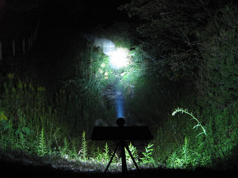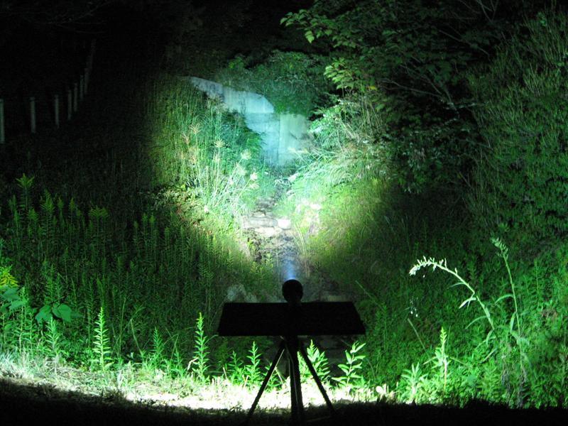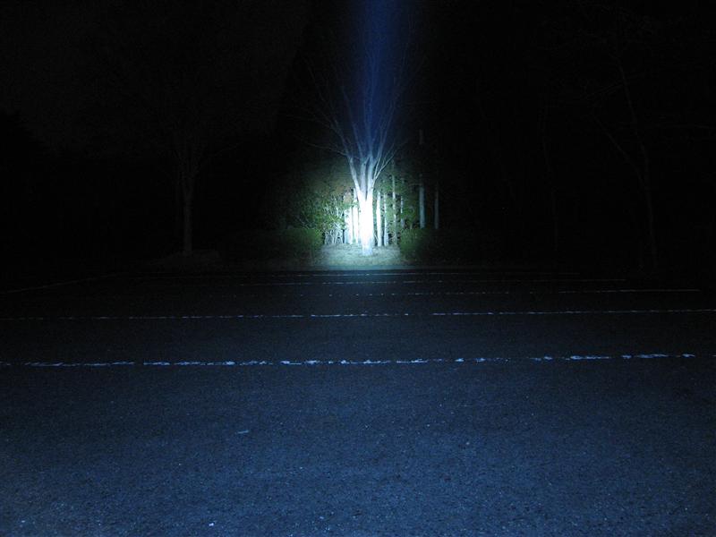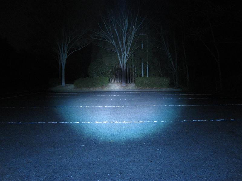 電源は 18500 x 2 ですので、BOXER の 10W に比べると電源では不利なはずですが、その分、普通のハンドライトと比べても遜色ない小ささで、ぱっと目にはとても HID だとは思えない小ささと、そこから放たれる超強力スポットはなかなか魅力的です