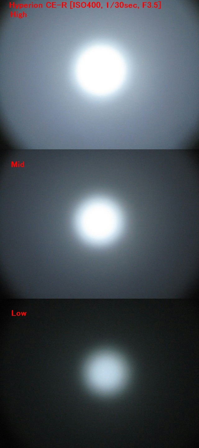 この Hyperion CE-R は使用している Cree XR-E の BIN は公開されてません、とりあえず P4 以上だと考えて問題ないと思ってますが、この撮影条件で EMR1 と比べちゃうと。。。