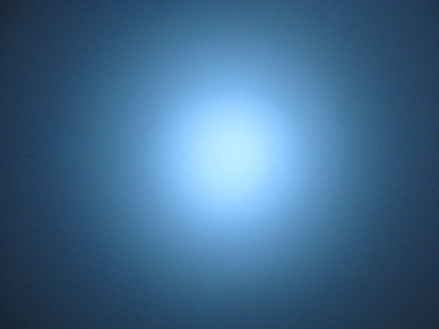 距離 1m 強で、この撮影範囲だと周辺光がうまく撮影できてない感じがします。Luxeon版よりは確実に明るいのですが、他の SSC P4 とうたわれてるライト(AA以上のバッテリーですが)から想像してたものからすると正直期待はずれでした