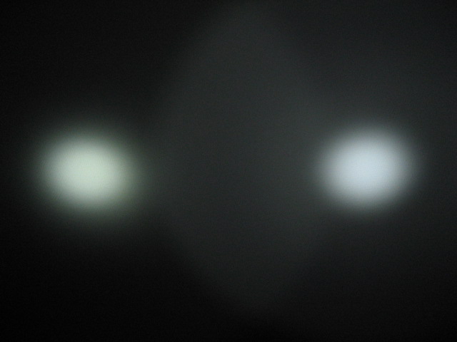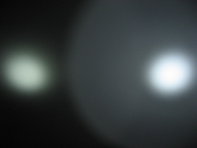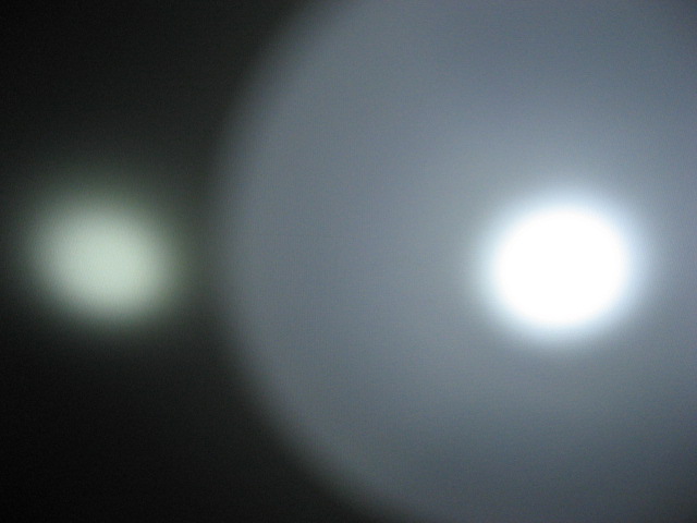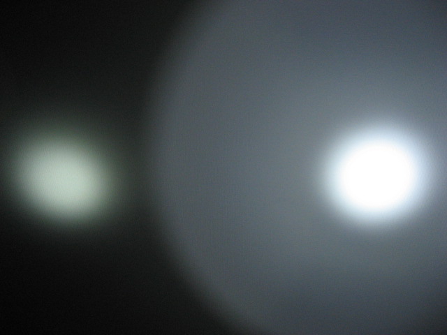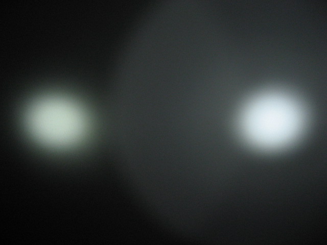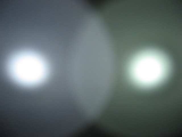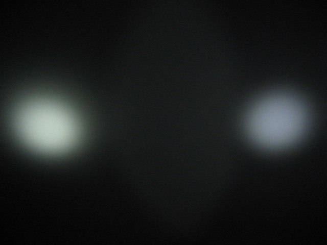 そうそう、JET-1 MK.II X のとこで 150lm vs 135lm というスペックの話をだしたので、あまり参考にはなりませんが、JET-1 MK.II X Turbo (14500) と L2D CE 135lm (NiMH x 2) の 2 本並べて照射とってみました。
