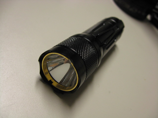 本体、ストラップ、電池(CR123)、ポーチです。5mm LED のキーチェーンライトが付いてきましたが、これはオマケでしょう。