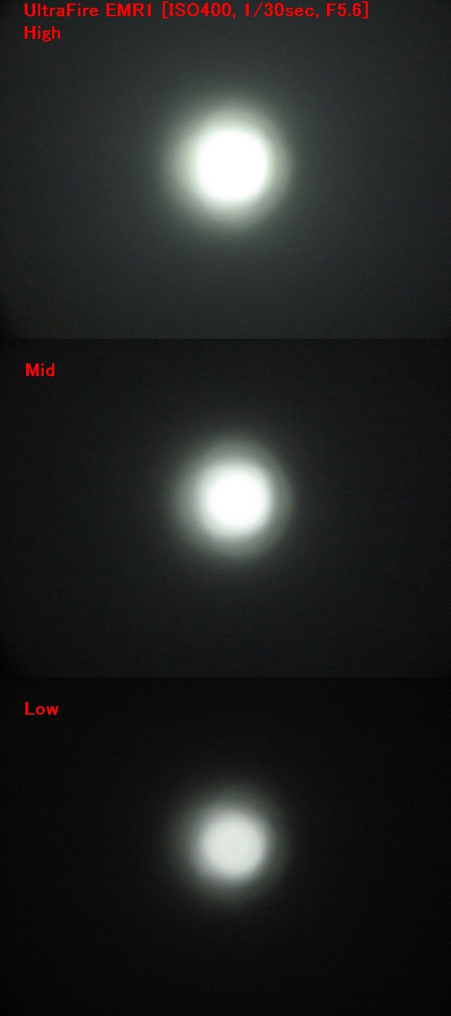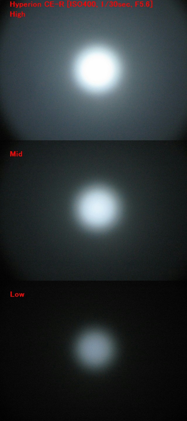 この Hyperion CE-R は使用している Cree XR-E の BIN は公開されてません、とりあえず P4 以上だと考えて問題ないと思ってますが、この撮影条件で EMR1 と比べちゃうと。。。