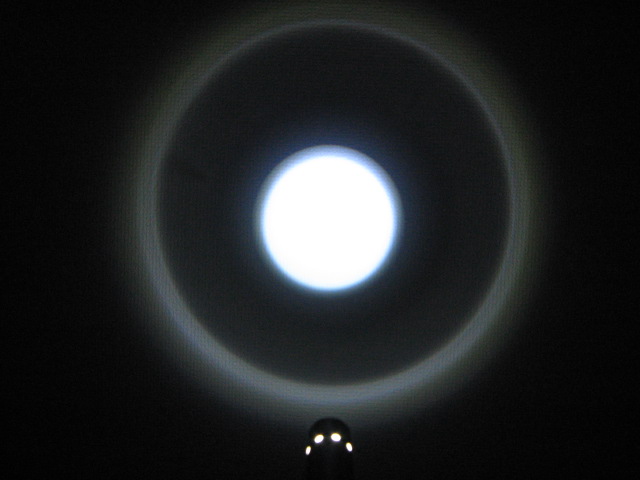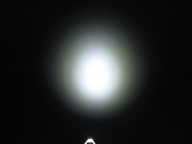 NiMH AAA で、リチウム電池の ARC-P より、眼で見て明るく感じるほど差があるので、照射パターンはちょっと汚いですが、なかなかたいしたものです。