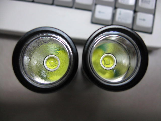 左が今回の Special Edition Q2 なわけですが、fenix-store の言うところの MOP - Medium Orange Peel リフレクタになっています。前に買ったときは特に Medium とは言ってなかったんですけどね、ま、深いごつごつOPでないのは確かなんですが、Heavy な OP や Light な OP リフがあるわけではないと思いますw