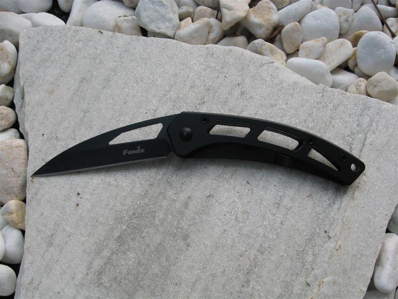 FENIX KM-3 (だったと思うんだけど、なんか自信なし)、なんか去年のクリスマスごろに FENIX が販促用に作ったらしいナイフ。fenix-store でセット品販売されてて、全部で三種類あったのかな?? それが、こないだの父の日セールで単品で$10くらいで売り出されてたので、1本だけ買ってみました。こういうときは送料込みの値段だと得した気分、何本かまとめるとなんか損した気分になることが多いんですけど。。。